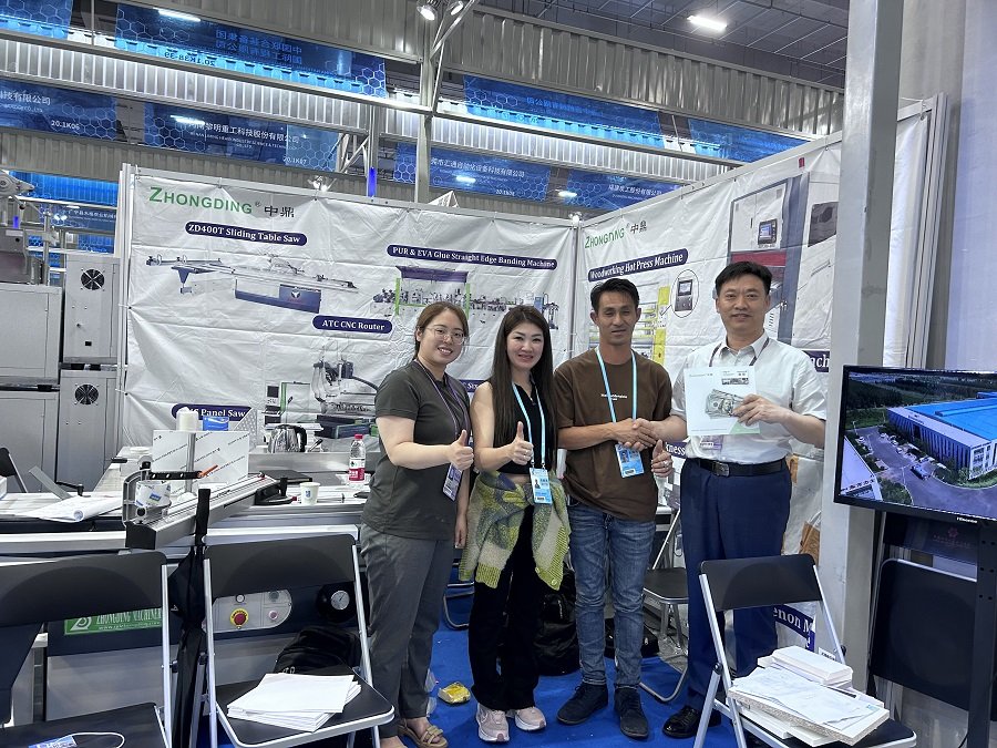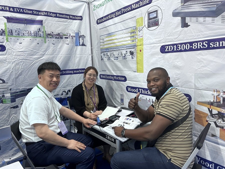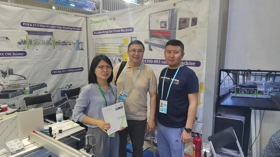 This time we brought a sliding table saw to the Canton Fair. Many customers are interested in our panel saw, edge bander, hot press, CNC router, drilling machine, planer and so on.