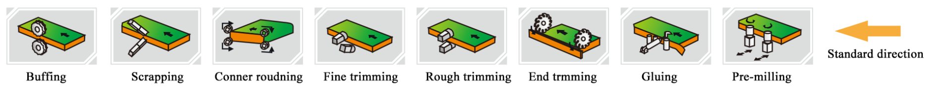 Auxiliary pinch roller for narrow boards. Stable edge banding even for 4cm width panel. Strong end cutting unit makes sure the well process.